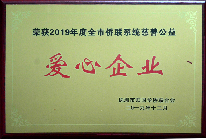 集團(tuán)公司榮獲“株洲市2019年度僑聯(lián)系統(tǒng)慈善公益愛心企業(yè)”稱號